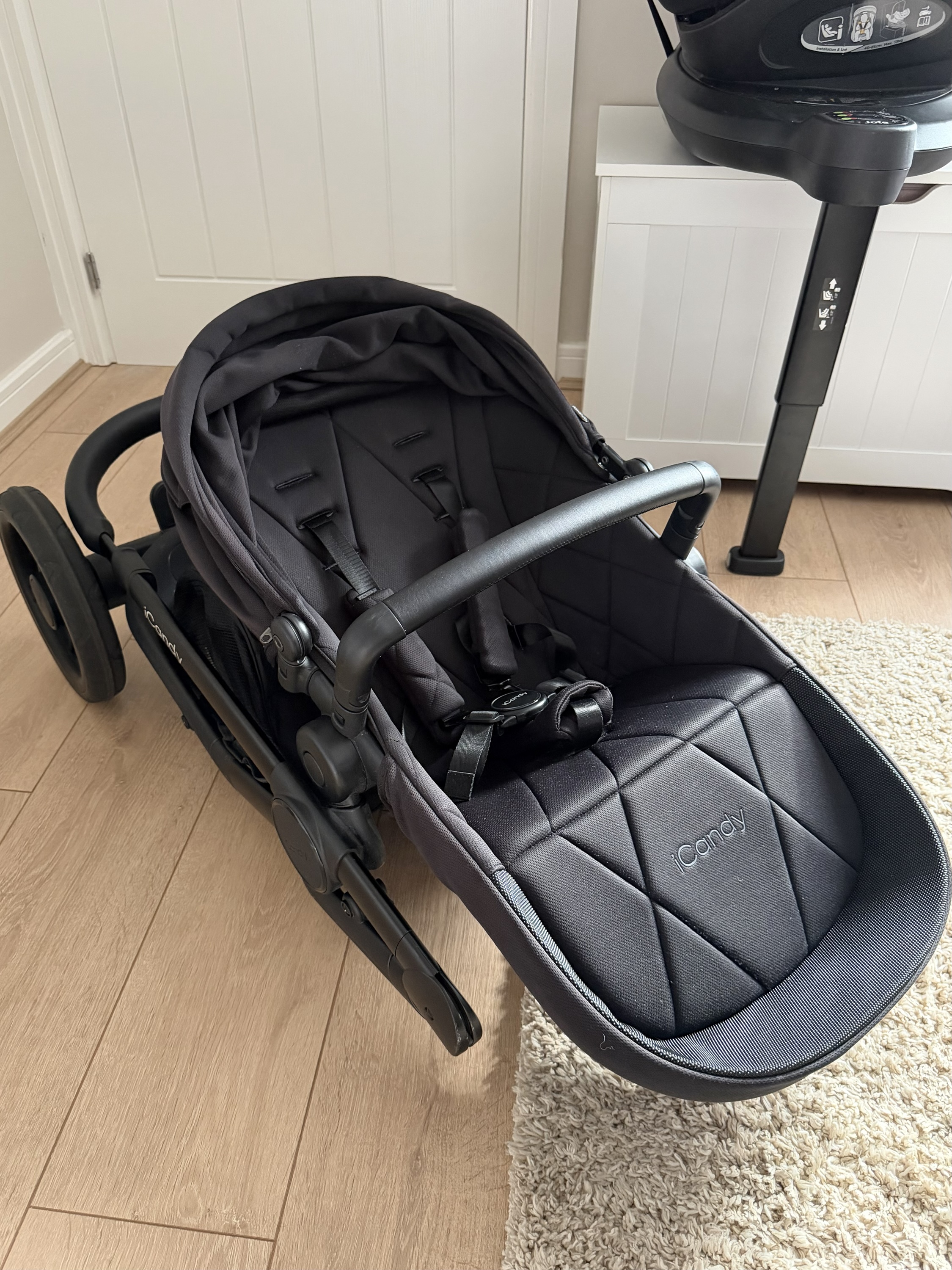 The iCandy Orange 3 Black Edition offers a smooth, sturdy push with a sleek, all-black finish. Suitable from newborn through to toddler, with the added benefit of an integrated ride-on board for siblings. Adapters can be purchased separately to turn this into a double.